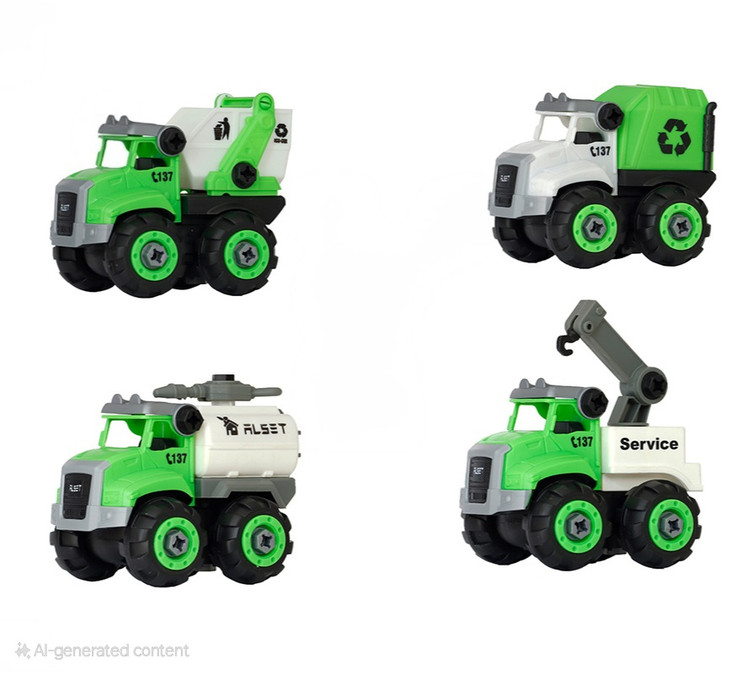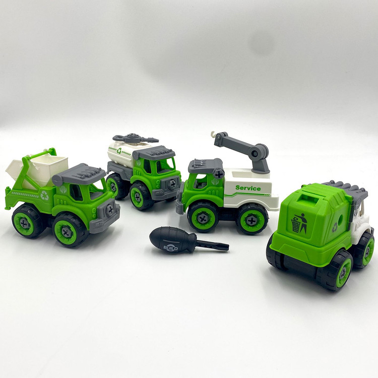 ماشین بازیافت فکری 4 عددی شامل 4 ماشین از جنس پلاستیک مقاوم و باکیفیت که در برابر ضربه مقاومت بسیار خوبی دارد و دو عدد پیچ گوشتی جهت باز و بسته کردن اجزای ماشینها می باشد.