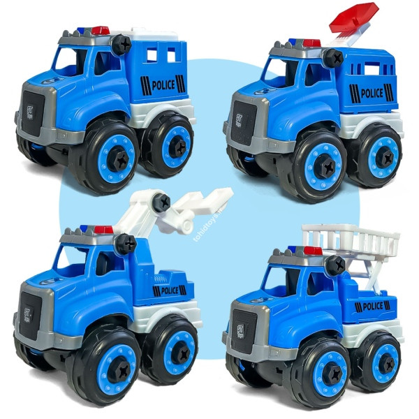 ماشین پلیس فکری 4 عددی شامل 4 ماشین از جنس پلاستیک مقاوم و باکیفیت که در برابر ضربه مقاومت بسیار خوبی دارد و دو عدد پیچ گوشتی جهت باز و بسته کردن اجزای ماشینها می باشد.