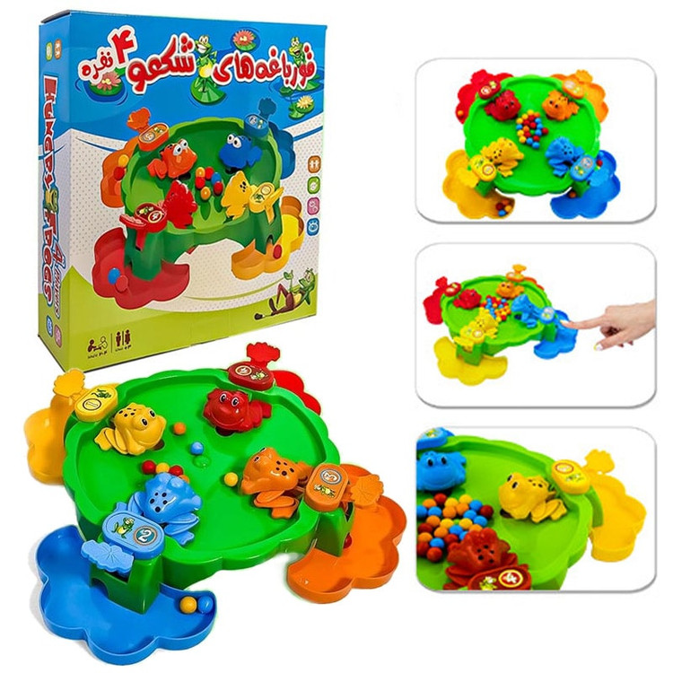بازی قورباغه های شکمو 4 نفره می تونه بچه ها رو ساعتها سرگرم کنه. توی این بازی باید تلاش کنید تا بیشتر از بقیه به قورباغه های شکمو تون غذا بدید. این مجموعه شامل 1 عدد صفحه بازی با 4 عدد قورباغه رنگی، 32 عدد توپ رنگی است. این بازی برای 2 تا 4 بازیکن در گروه سنی 4 سال به بالا (حتی نوجوانان و بزرگسالان) مناسب است. ابعاد بازی 35×35 سانت وبا ارتفاع 6 سانت است.