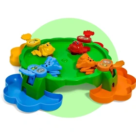 چهارتا قورباغهی بامزه روی یک صفحه بازی به شکل برکه نصب شدن. این قورباغه ها خیلی گرسنشونه و تا توپ های رنگی رو می بینند شیرجه میزنن تا زودتر توپ ها رو بخورن و سیر بشن. این وسط هر قورباغه ای که توپ بیشتری خورده باشه برنده ی بازی میشه. شروع بازی با ریختن توپ ها در وسط برکه است. کافیه اهرم رو فشار بدین تا قورباغه ها به جلو بپرن و شروع به خوردن توپ ها کنند.