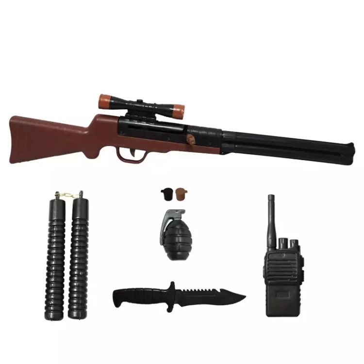 اسباب بازی تفنگ دولول شکاری یک اسباب بازی ساخته شده از جنس پلاستیک ، و کاملا بی خطر است. این تفنگ طول تقریبی 72 سانتی متر داشته و دارای لوازم همراهی همچون یک عدد تفنگ دو لول همراه با بی سیم، نانچیکو، نارنجک، چاقو میباشد . این تفنگ اسباب بازی برای کودکان علاقه مند به بازی های مهیج پلیسی علاقه دارند مناسب میباشد.