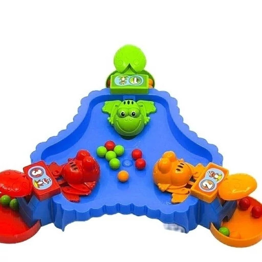 فشار دادن یک اهرم و دیدن اینکه چطور قورباغه به جلو میپرد و توپهای کوچک را میبلعد فعالیتی است که به احتمال زیاد کودکان را به وجد میآورد. قورباغههای گرسنه چنین مکانیزمی دارد؛ روی یک صفحهی برکه مانند پلاستیکی تعدادی توپ کوچک رنگی ریخته میشود و سه قورباغه که در سه گوشهی صفحه قرار دارند با فشار اهرم به جلو میپرند و توپها را میبلعند. با تمام شدن توپهای وسط، کسی که قورباغهاش بیشترین توپ را بلعیده باشد برنده است