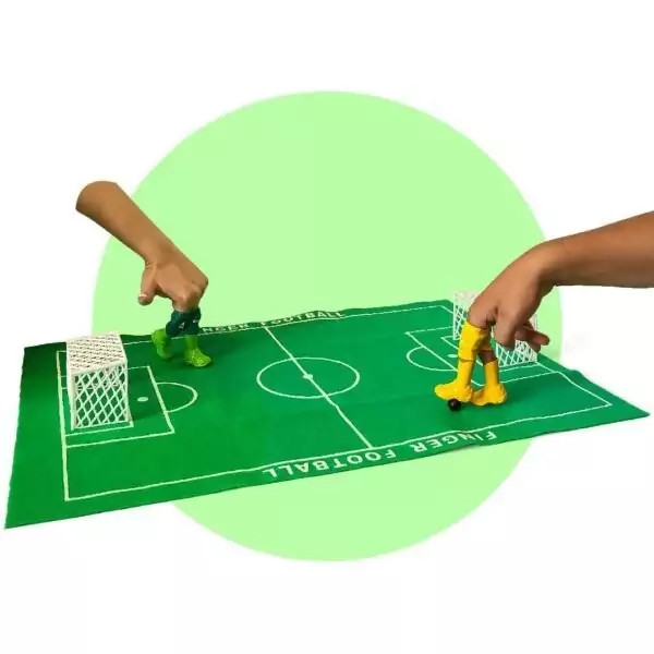 2 عدد مینی دروازه- 1 عدد زمین فوتبال- 1 عدد دفترچه راهنما- 2 عدد توپ- 2 عدد شلوارک- 2 عدد جوراب- 2 عدد کفش فینگر بال یا همان فوتبال انگشتی یک بازی فوتبالی رومیزی عالی و هیجانانگیز است که میتواند کودکان را وارد دنیای فوتبالی خود کند. این بازی دارای دو عدد توپ کوچک و دو دروازه است که کودکان باید سعی کنند توپ را وارد دروازه حریف کنند. اما بازی به این سادگی هم نیست و کودکان در این بازی باید از فکر خود نیز کمک بگیرند و بهترین ترکیب را برای تیم خود بچینند. ترکیب فکر و حرکت باعث شده است که همه ما با یک اسباببازی ارزشمند طرف باشیم.