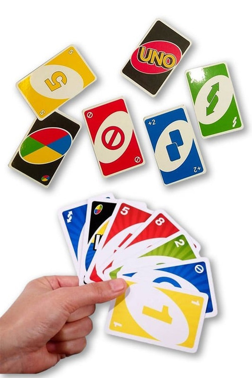 بازی اونو نوعی بازی کارتی دو تا ده نفره است که از محبوبیت خاصی در سراسر دنیا برخوردار است. اونـو یـک بازی بسیار سرگرمکننده و هیجانانگیز برای جمعهای خانوادگی و دوستانه است و میتواند ساعتها بازی و سرگرمی برای افراد خلق کند. این بازی برای افراد بالای 7 سال مناسب است؛ بنابراین میتوانید با کودکان خود نیز همبازی شوید. UNO یک واژه اسپانیایی به معنی یک است. این محصول نسخه 108 کارتی اونو است و برای هر رنگِ کارت، طراحی جدید و به خصوصی به کار گرفته شده است. ابعاد این کارت ها 55×85 میلیمتر و گرماژ آن 350 است. به غیر از زیبایی و طراحی جدید، مهمترین ویژگی این نسخه، کارتهای گرم بالا و با دوام آن است. با داشتن این نسخه، در هر کجا که باشید میتوانید از این بازی لذت ببرید. جنس کارتهای این نسخه از لمینت 350 است.این محصول در باکس مقوایی زیبایی قرار گرفته و میتواند هدیهای خاص برای علاقمندان بازیهای کارتی باشد.