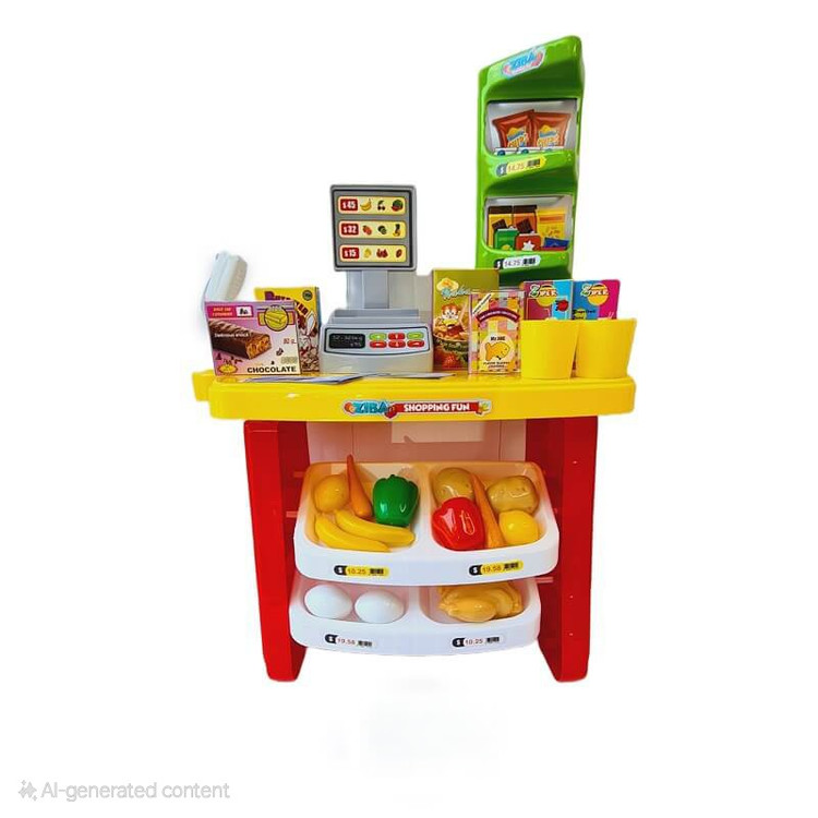 متاسفانه این کالا در حال حاضر موجود نیست. میتوانید از طریق لیست بالای صفحه، از محصولات مشابه این کالا دیدن نمایید.سوپرمارکت به همراه با چرخ خرید است که لذت بازی را چندین برابر کرده است .همراه این سوپرمارکت میوه و مواد غذایی پلاستیکی مختلف وجود دارد . برایواقعی تر نشان دادن این سوپرمارکت دستگاه کارتخوان ، ترازو و اسکنر بارکدبه این میز وصل میشود تا کودک دلبندتان ساعتها سرگرم شود .مناسب برای کودکان 3 سال به بالا